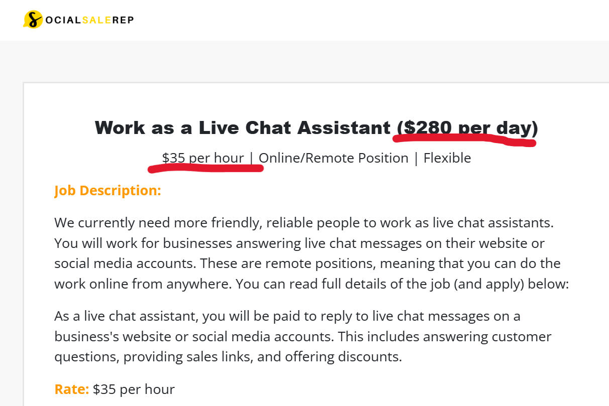Job Description:We currently need more friendly, reliable people to work as live chat assistants. You will work for businesses answering live chat messages on their website or social media accounts. These are remote positions, meaning that you can do the work online from anywhere. You can read full details of the job (and apply) below: